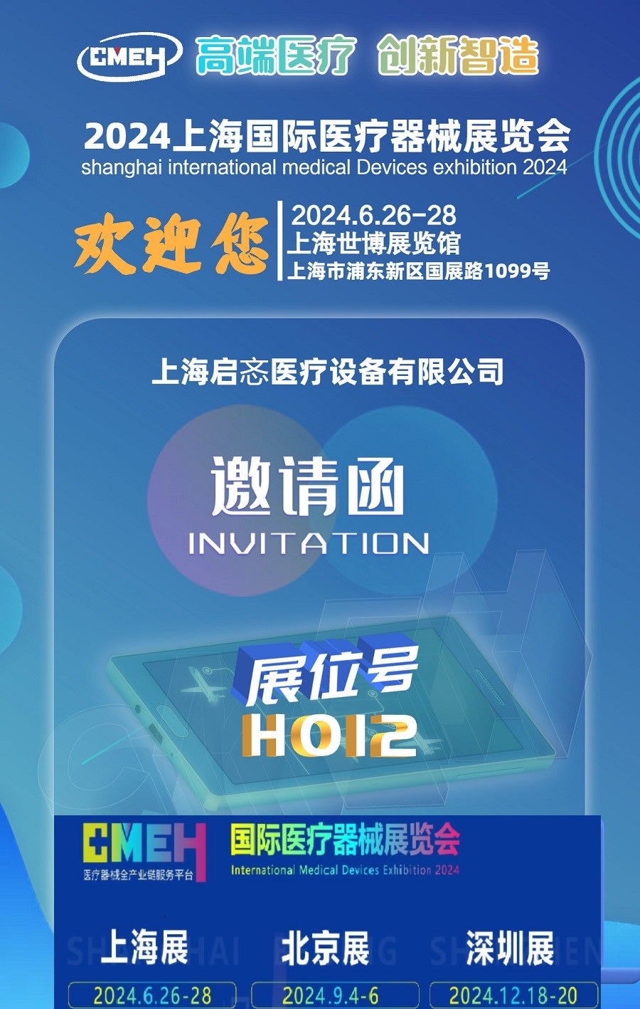会议名称:2024第四十二届上海国际医疗器械展览会(简称CMEH)